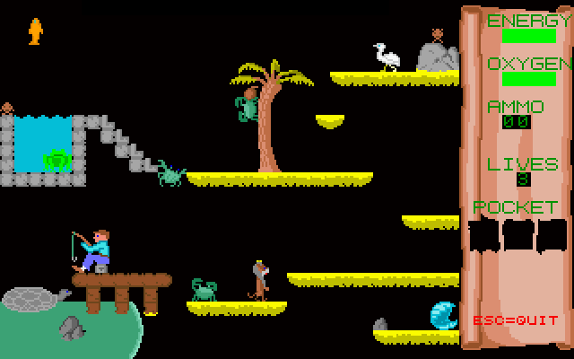 You guide King Abmis the Lion in his quest to recover stolen potatoes. They were abducted, treated horribly by being thrown into a potato bag and taken to a remote island. Luckily they escaped but are now scattered all over the place and you have to find every single one of them before you can return (and not a moment sooner). The island is, of course, filled with dangers and puzzles and dangerous puzzles.