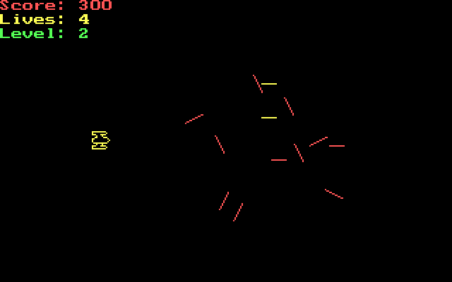 Argon is a space blast-‘em-up game which gradually gets harder as your score increases. The aim of the game is to shoot the rocks that fly about the screen at the same time as avoiding them. Occasionally an enemy spaceship will come on screen and take a pot shot at you. You must destroy them too. The enemy spaceships are immune to the rocks.