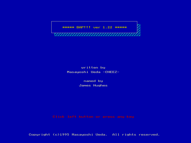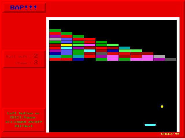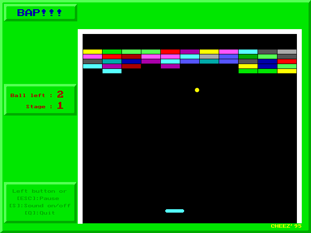BAP! is a Freeware Ball & Paddle game published by Masayoshi Ueda in 1995.