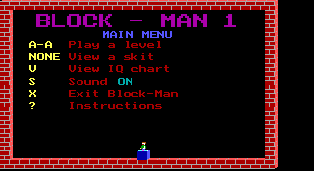 Block Man Soleau Software, 1993 Play now Bookmark Download Block Man is a Shareware Puzzle game published by Soleau Software in 1993. Category: Puzzle License: Shareware Rating: rate now Language: English Share this game Facebook Twitter Reddit Game controls - Left - Right - Up - Pick up / drop blockX - Exit Rating & comments No ratings yet Rate now