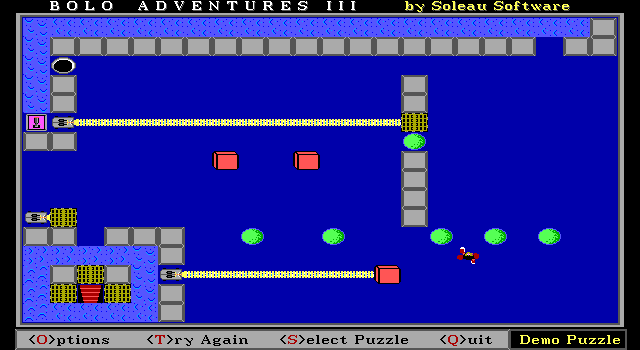 Bolo Adventures 3 Soleau Software, 1996 Play now Bookmark Download Bolo Adventures 3 is a Shareware Puzzle game published by Soleau Software in 1996. Category: Puzzle License: Shareware Rating: rate now Language: English Share this game Facebook Twitter Reddit Game controls - Left - Right - Up - Down Rating & comments No ratings yet Rate now