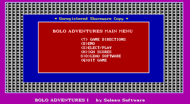 Bolo Adventures Soleau Software, 1994 Play now Bookmark Download Bolo Adventures is a Shareware Puzzle game published by Soleau Software in 1994. Category: Puzzle License: Shareware Rating: rate now Language: English Share this game Facebook Twitter Reddit Game controls - Left - Right - Up - Down Rating & comments No ratings yet Rate now