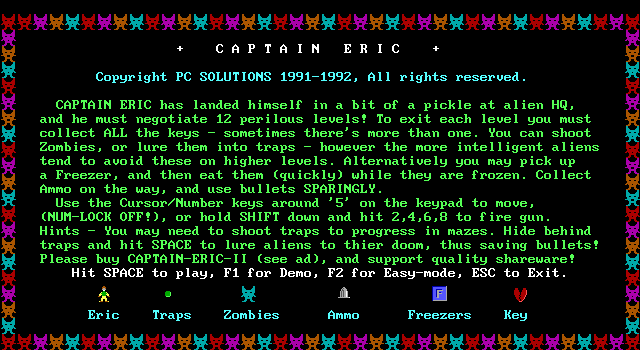 Captain Eric PC Solutions, 1992 Play now Bookmark Download Captain Eric is a Shareware Adventure game published by PC Solutions in 1992. Category: Adventure License: Shareware Rating: rate now Language: English Share this game Facebook Twitter Reddit Rating & comments No ratings yet Rate now