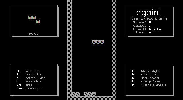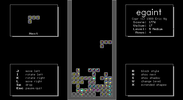 Egaint Eric Ng, 1989 Bookmark Download Egaint is a Freeware Tetris game published by Eric Ng in 1989. Category: Tetris License: Freeware Rating: rate now Language: English Share this game Facebook Twitter Reddit Rating & comments No ratings yet Rate now