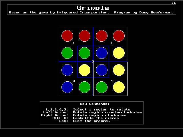 Gripple is a Freeware Puzzle game published by Palmetto Bay Publishing in 1991.
