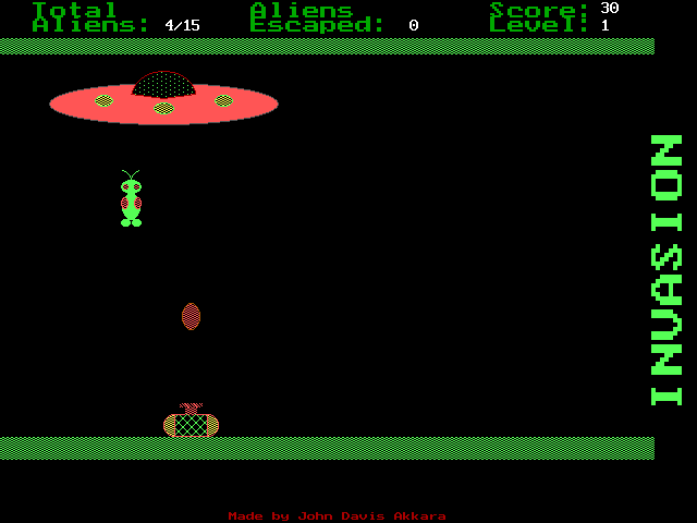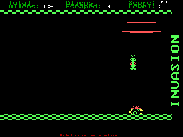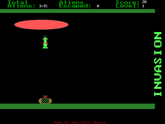 Invasion is a Freeware Shoot 'em up game published by John Davis Akkara in 2002.