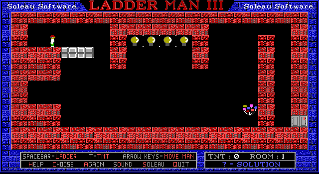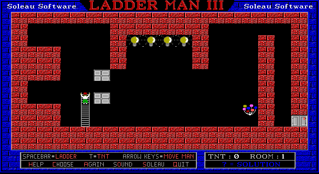 The objective of Ladder Man is to collect all the yellow light bulbs located in each room. Once collected, get Ladder Man to the doorway to exit.