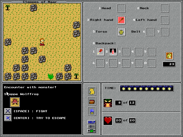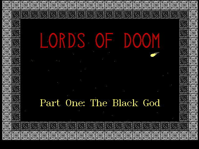 The Black God is the first part of Lords of Doom fantasy role playing saga. The purpose of the game is to lead alone hero to defeat powerful evil demi-god awaked by the Great Comet. You will find the large playing area, lots of interactive dialogues with NPCs, magical book with over sixty pages of darkest knowledge, plenty of monsters, many items and powerful spells. Game features VGA high-resolution (640x480) graphics, intuitive contol interface (mouse or keyboard) and build in HELP. This game was designed to give the player maximum level of realism in typical situations: (for example when hero finds the locked door, he need not to seek a key, he may always try to pick the lock or break through the door - it will take some time, of course) etc. There are combat and healing spells available for the character, but there are aslo spells which allow to fly, resist fire, poison and enemy’s blows, and even move through stone walls.