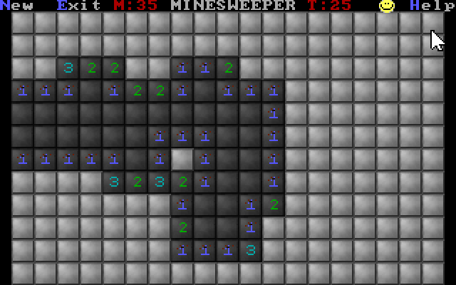Minesweeper is a fast paced puzzle game. A field of squares is laid out before you. Beneath a set number of these squares lies a land mine. Your task is to mark off these mines and prevent them from detonating. You can accomplish this by uncovering select squares. If no mine lies beneath it, then a number appears. This is the number of mines (from 1 to 8) surrounding that square. If no mines lies around it, then those eight squares are automatically uncovered. If a mine lies beneath the uncovered square, then it detonates and the game is over. You must mark each square in which you believe a mine lies with a flag. The object of the game is to mark each mine on the field with a flag in the shortest time possible.
