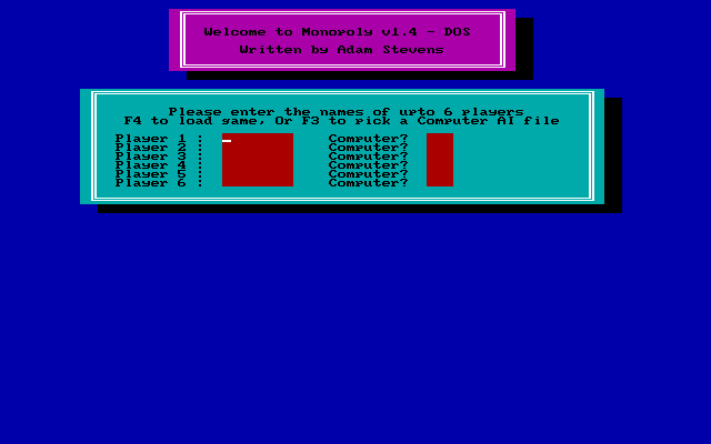 Monopoly is a Freeware Board games game published by Adam Stevens in 1998.