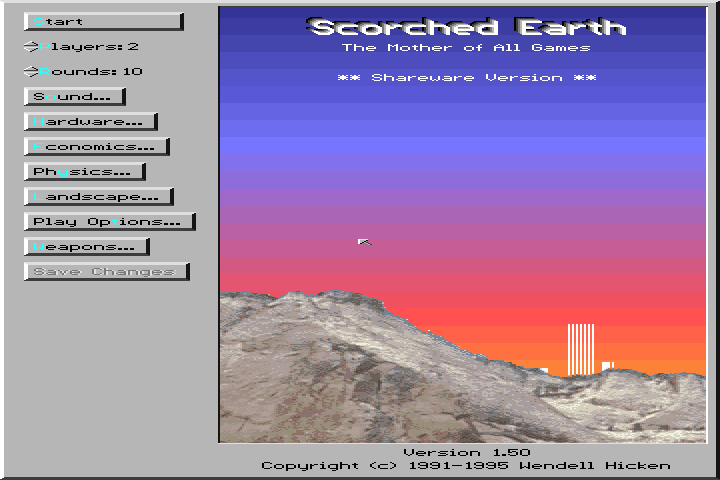 Scorched Earth Wendell Hicken, 1995 Play now Bookmark Download Scorched Earth is a Shareware Action game published by Wendell Hicken in 1995. Category: Action License: Shareware Rating: rate now Language: English Share this game Facebook Twitter Reddit Game controls or - Aim or - Set powerEnter - Shoot Rating & comments No ratings yet Rate now