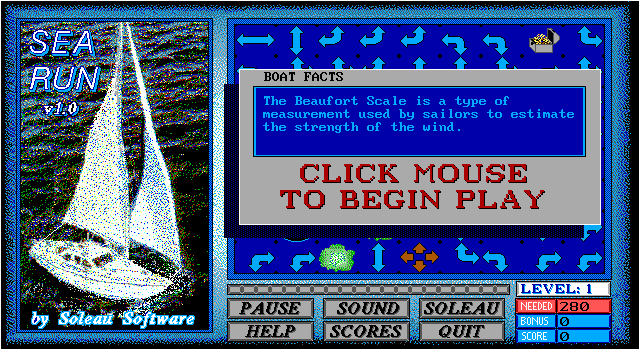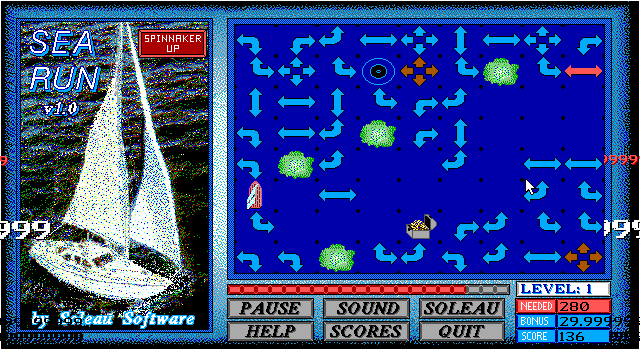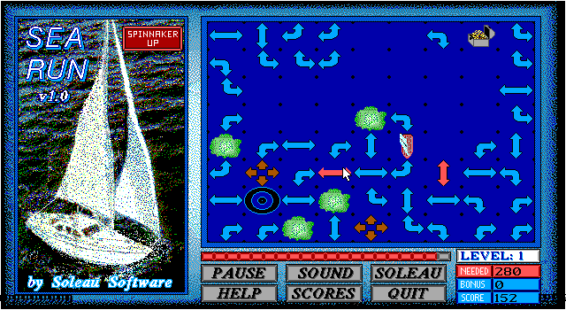 The objective of Sea Run is to keep your boat sailing through the water as long as possible before it reaches a dead end. You do this by creating a continuous path before the boat by rotating the wind arrows.