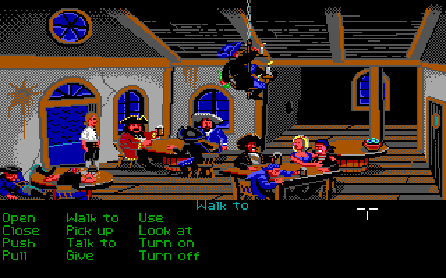 The Secret of Monkey Island is a comedy set during the “golden age” of piracy in the Caribbean. The game’s twisty plot leads our hero, fresh from the Old World, on a hilarious, complex, swash-buckling search for the fabled secret of Monkey Island. Like other Lucasfilm Games graphic adventures, The Secret of Monkey Island features cinematic storytelling, high resolution graphics, and a unique point ‘n click interface.