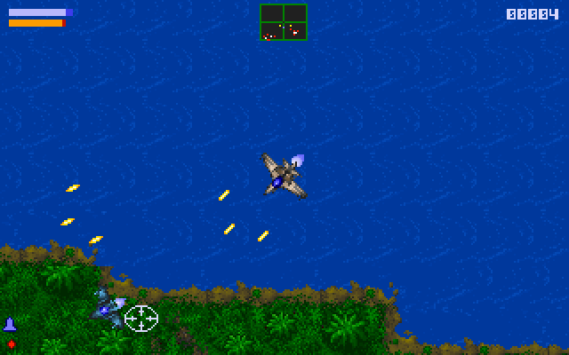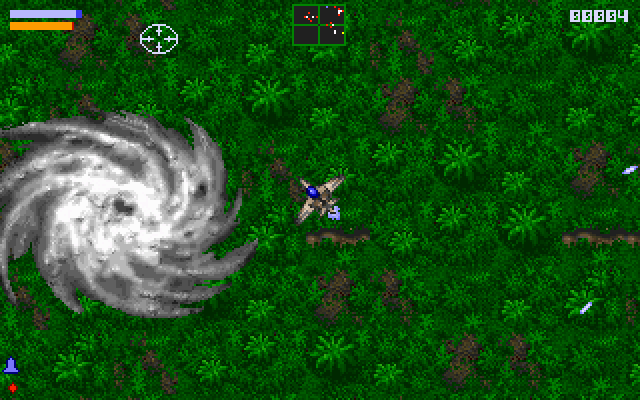 Zone 66 is a high-tech 32-bit arcade game for 386 and faster computers. You fly your fighter jet through a huge 360-degree scrolling playfield that’s jam-packed with 256-color enemies and terrain. Inflict massive damage on the enemy bunkers, artilery, and industrial sites, leaving craters and devastated earth in your wake.